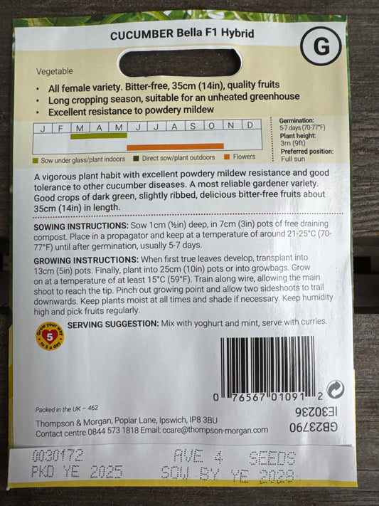 SEEDS - Cucumber Bella F1