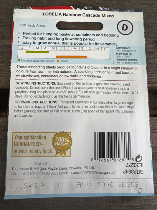 SEEDS - Lobelia (Trailing) Rainbow Cascade Mixed