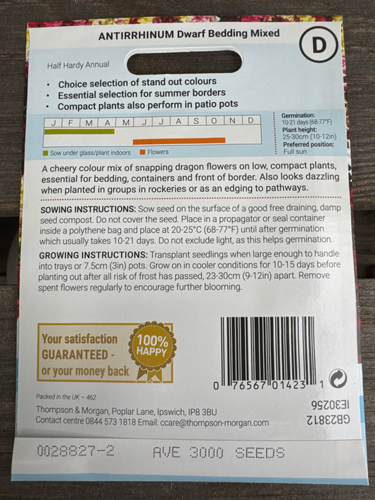 SEEDS - Antirrhinum Dwarf Bedding Mixed