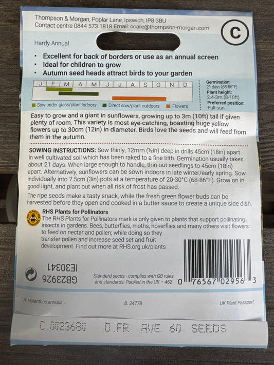 SEEDS - Sunflower Russian Giant