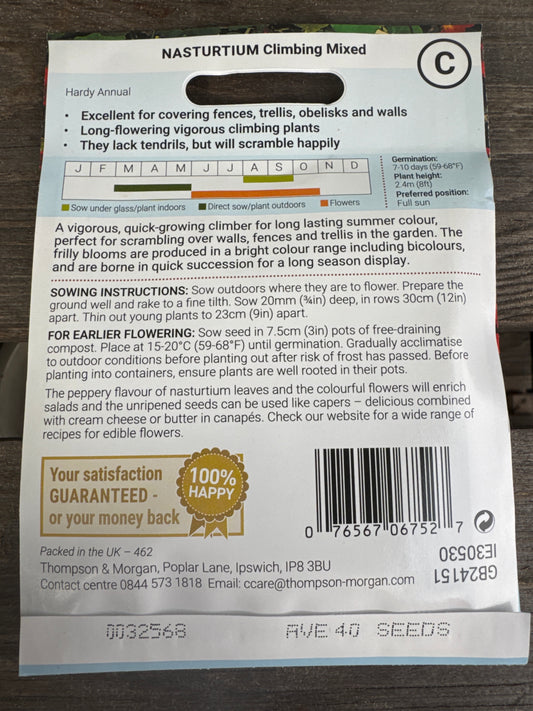 SEEDS - Nasturtium Climbing Mixed