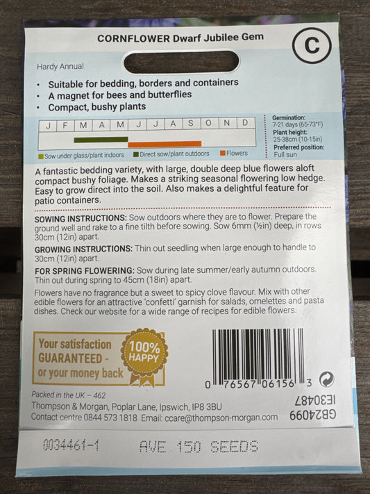 SEEDS - Cornflower Dwarf Jubilee Gem