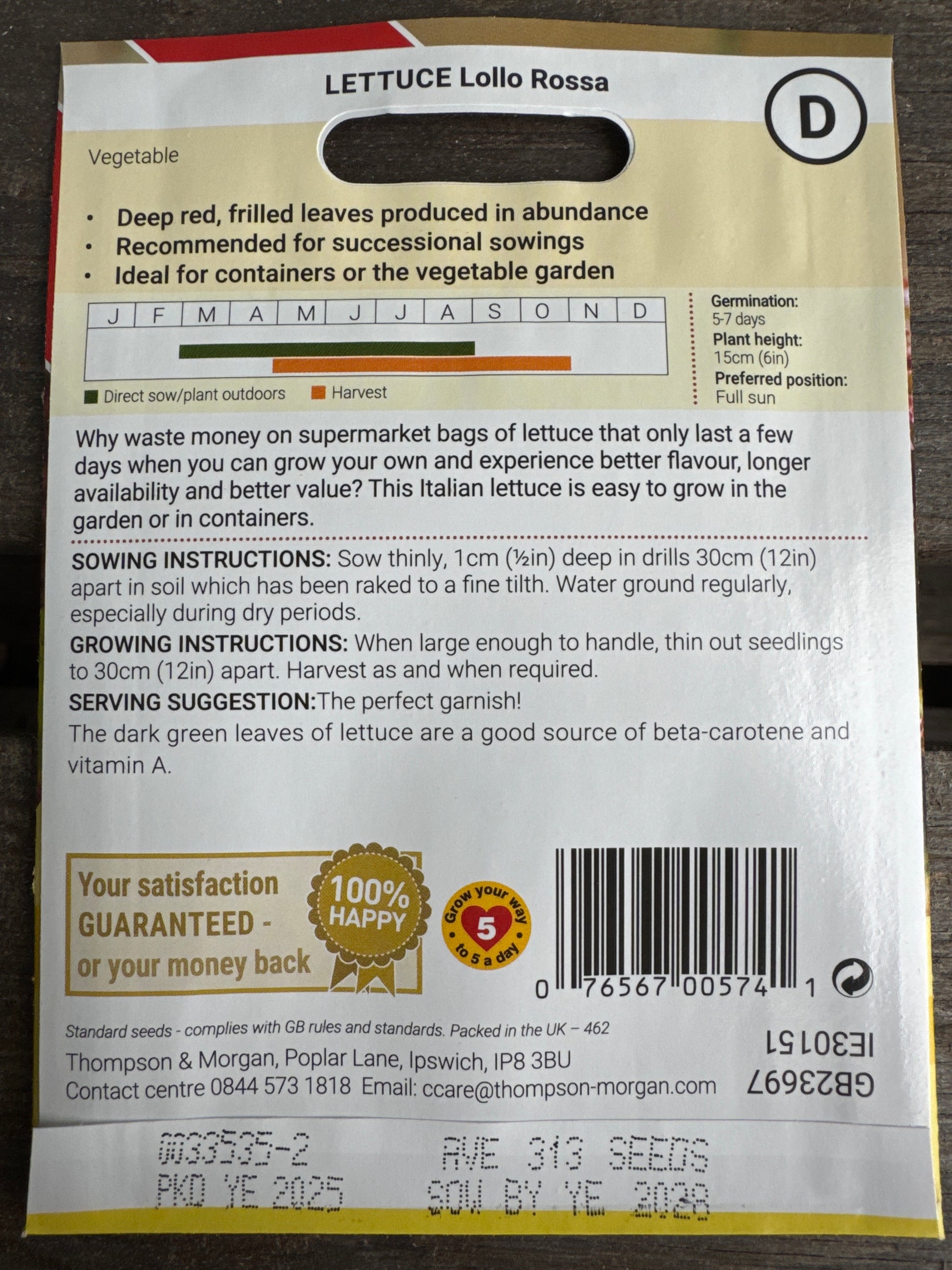 SEEDS - Lettuce Lollo Rossa